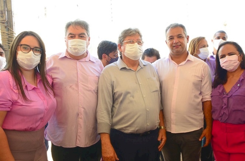 Ao lado de João Azevedo, prefeito e vice-prefeita de São Francisco, destacam ações do governo do Estado ao município