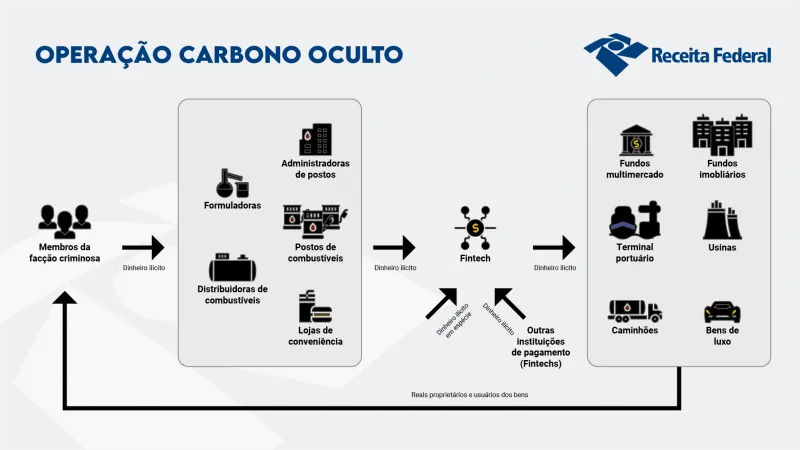 A força-tarefa, que conta com cerca de 1.400 agente, foi denominada Carbono Oculto. A operação acontece nos estados de São Paulo, Espírito Santo, Goiás, Mato Grosso do Sul, Mato Grosso, Paraná, Rio de Janeiro e Santa Catarina.
