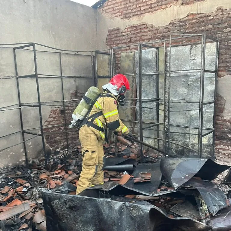 O incêndio consumiu totalmente o depósito, mas ninguém ficou ferido. Proprietária recebeu as devidas orientações quanto aos riscos da edificação.