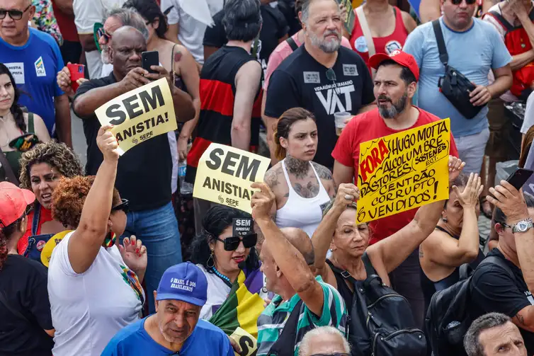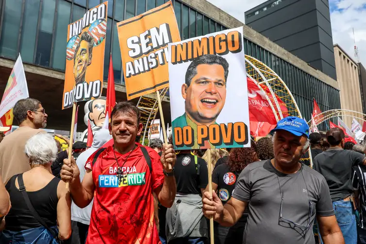 Na capital federal, os manifestantes se reuniram em frente ao Museu da República e se dirigiram ao Congresso, onde gritaram palavras de ordem e ergueram cartazes com os dizeres “Sem anistia para golpista”. Também houve criticas ao presidente da Câmara dos Deputados, Hugo Motta (Republicanos-PB).