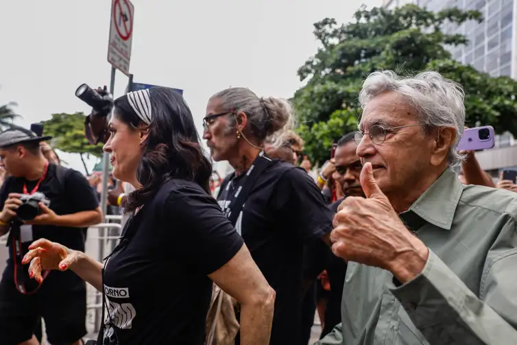 As artistas Camila Pitanga e Teresa Cristina estavam misturadas ao público, no chão. A atriz disse que é papel dos cidadãos brasileiros lutar pelo melhor de seu país. “A gente veio aqui depois de uma semana infernal, de desrespeito às leis, aos povos indígenas, e ao povo brasileiro com um PL da Dosimetria, que na verdade, é aceitação do golpismo. São muitas bombas”, disse.