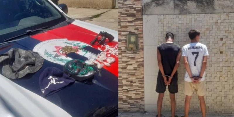 Ao perceberem a aproximação da viatura, os suspeitos tentaram fugir para dentro da residência onde se encontravam, mas foram alcançados ainda na porta do imóvel. Durante a busca pessoal, os policiais encontraram com um dos homens um revólver Taurus, calibre .38. Com o outro suspeito, foram apreendidas 10 pedras de substância análoga ao crack e 10 trouxas de substância semelhante à cocaína.